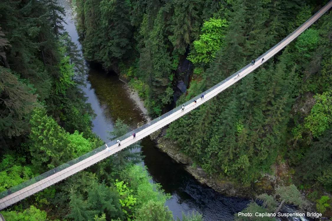 卡佩兰奴吊桥是温哥华最具代表性和震撼力的名胜之一。它横跨宽达450英尺的卡佩兰奴河,悬挂在摄人魂魄的230英尺高空。顾名思义,公园以吊桥得名。这座著名的吊桥横跨宽达137米的卡佩兰奴河,悬挂在摄人魂魄的70米高空。