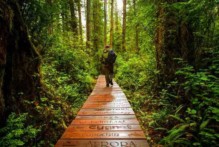 温哥华岛的西海岸步道(West Coast Trail)崎岖迤逦75公里,被《孤单星球》、《美国国家地理》杂志列为全球十大著名徒步路线之一,也是北美具挑战性的徒步路线。1973年,太平洋海滨国家公园保护区正式开放这条步道,从此逐渐享誉全球,成为资深户外旅行者的徒步圣地。