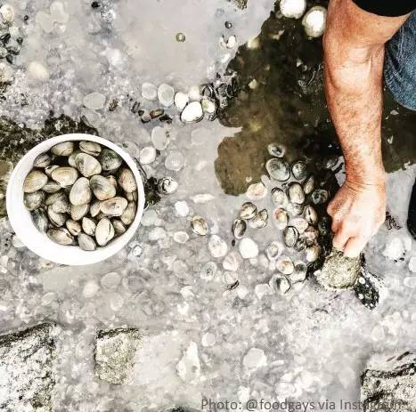 ▲国外小伙伴的挖贝体验,图中是蛤蜊。