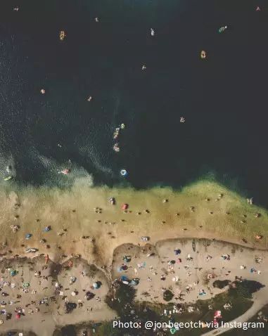 这里是温哥华的后花园——邦岑海滩(Buntzen Beach)。夏季会有些繁忙,但是一页木筏、一只皮划艇,就能带你去周围任意一座与世隔绝的小岛,尽享安宁夏日……