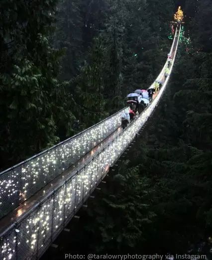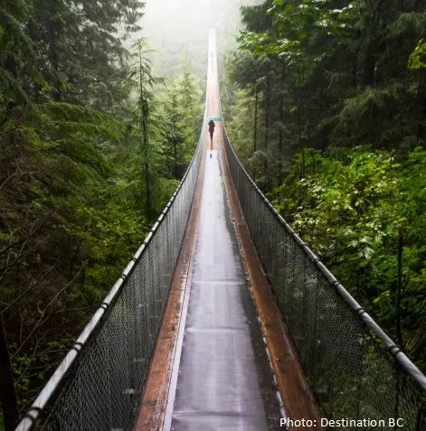 比如,闻名于世的卡佩兰奴吊桥公园就是温哥华市内的世外桃源。近140米长的古老吊桥横亘在70米的高空,吊桥的另一端就是郁郁葱葱参天大树汇集而成的森林,幽静的小径步道穿梭其间,游乐项目“树梢探险”(Treetops Adventure)让你体验在雨林树梢行走的刺激。