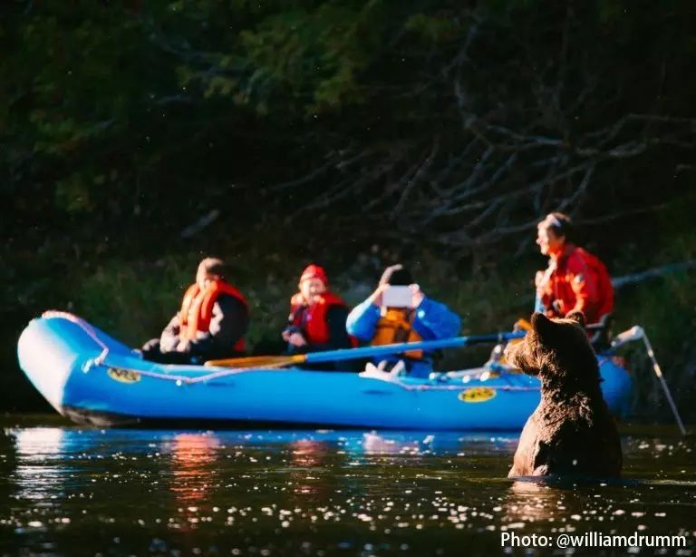 大多数观熊之旅都使用观景高台或在河中乘船漂流。一般来说,旅程中成功观赏到熊的机率非常高,通常为90-100%。