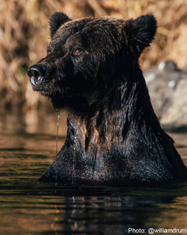战地记者罗伯特·卡帕说过一句很著名的话:“如果你拍得不够好,那是因为你靠得不够近。”这或许也契合了美国摄影师William (Bill) Drumm的拍熊经历。这位摄影师拥有多年拍摄野生动物的经验,每年他都会专门跑到加拿大BC省的大熊雨林(Great Bear Rainforest)呆上几个月拍摄这里的野生动物,而熊无疑是这里拍摄难度最高的动物。