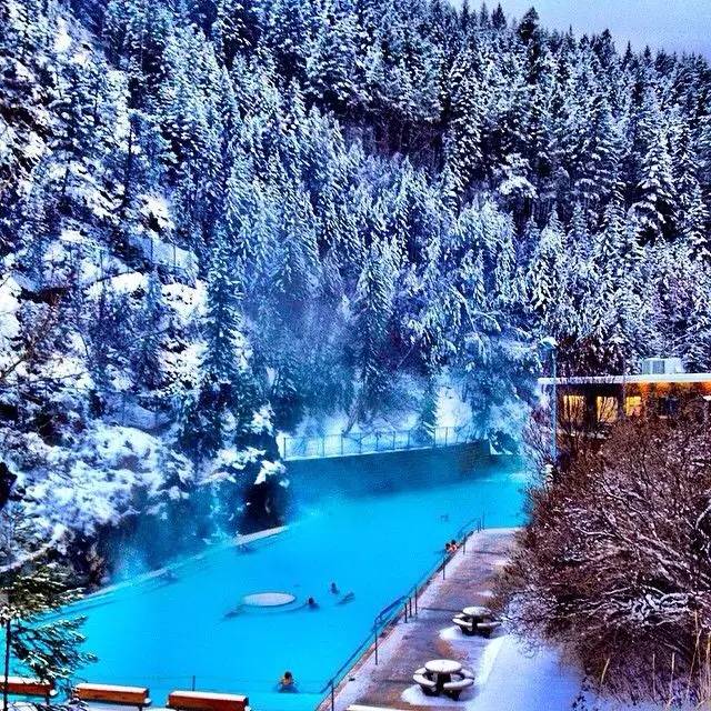 但是最吸引人的还是城北三公里的温泉。温泉泳池非常现代化,夏天大受欢迎,冬天景色绝佳。水从地面涌出时是44℃,进入第一个温泉池时是39℃,到了最后一个池子时水温则是29℃。一天的户外运动过后,泡一泡温泉,可以放松身心,带走一天的疲惫。