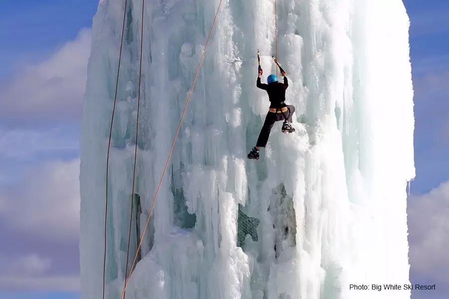 在电影《冰火之歌》里,北境冰墙之壮观是否曾让你有过想亲临现场感受一番的念头?而现实世界中就有一处同样壮观的冰塔。大白山滑雪度假村(Big White Ski Resort)拥有一个大型冬季游乐园(Happy Valley Adventure Park), 园内有一座高约60米的冰塔供客人攀爬,你就算零经验也OK,经验丰富的工作人员会帮你鼓足勇气,学会基础技巧,然后收获登顶的乐趣。