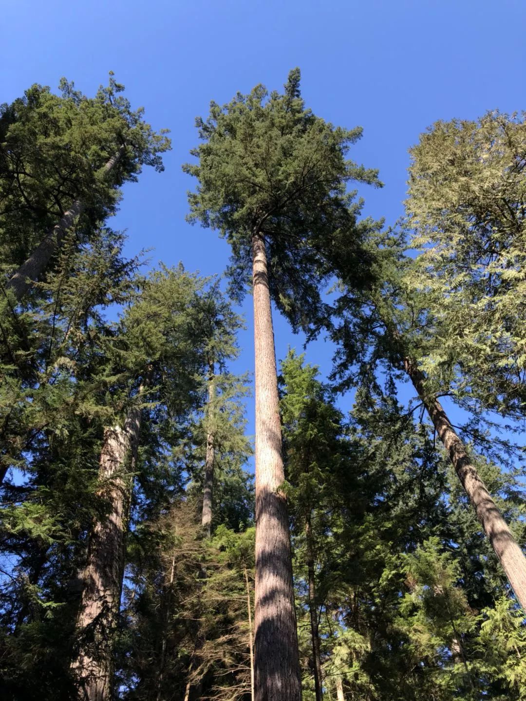 卡佩兰奴吊桥公园的树木高达百米,其中多数是道格拉斯冷杉。这种冷杉,可以在严酷的火灾中迅速恢复过来——在其他植物死亡的时候,它们的种子在高温中爆裂,等环境恢复,它们迅速抢夺土地和阳光,因而当你看到成片的道格拉斯冷杉,可以判断这里曾经发生过森林大火。
