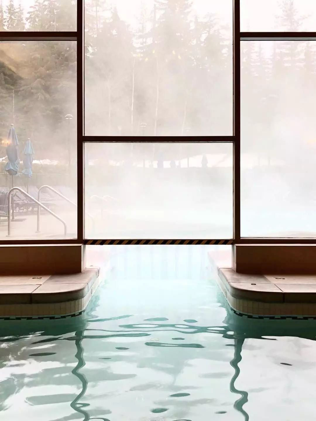 泳池里的水是热的,可以从室内游到室外。游到室外,遇到下雪的时候,那些雪就会融化在水蒸气里,不落到你的脸上。