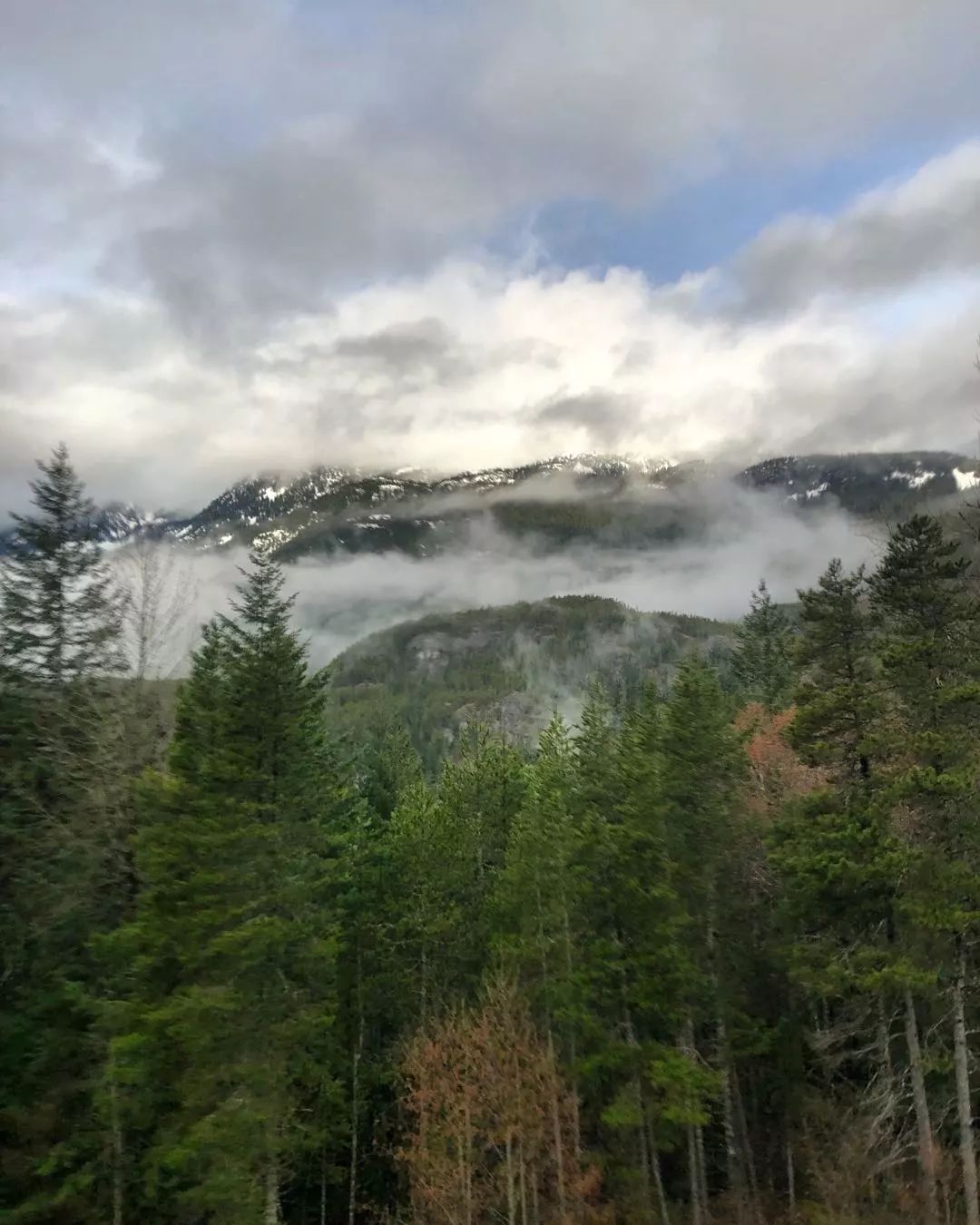 介乎西温哥华和威士拿的一段99号公路又称海天公路(Sea to Sky Highway),沿着海湾蜿蜒攀升,路的一边是魅力无限的太平洋豪湾(Howe Sound),另一边是北美最长的沿岸山脉陡峭的山崖。旅途中,我们渐渐习惯了这个地区的迷人之处:一抬头就是森林,森林之上是高山,山的上面是云。