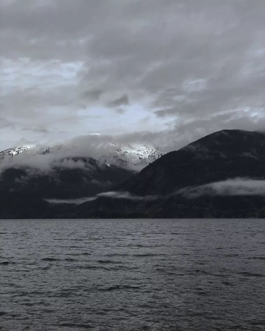 有一天,车开在海天公路(Sea to Sky Highway)上,沿途的树林和高山从不间断,我特地跑到车头去拍摄,却因为美不胜收、拍不过来,就再也不拍了。
