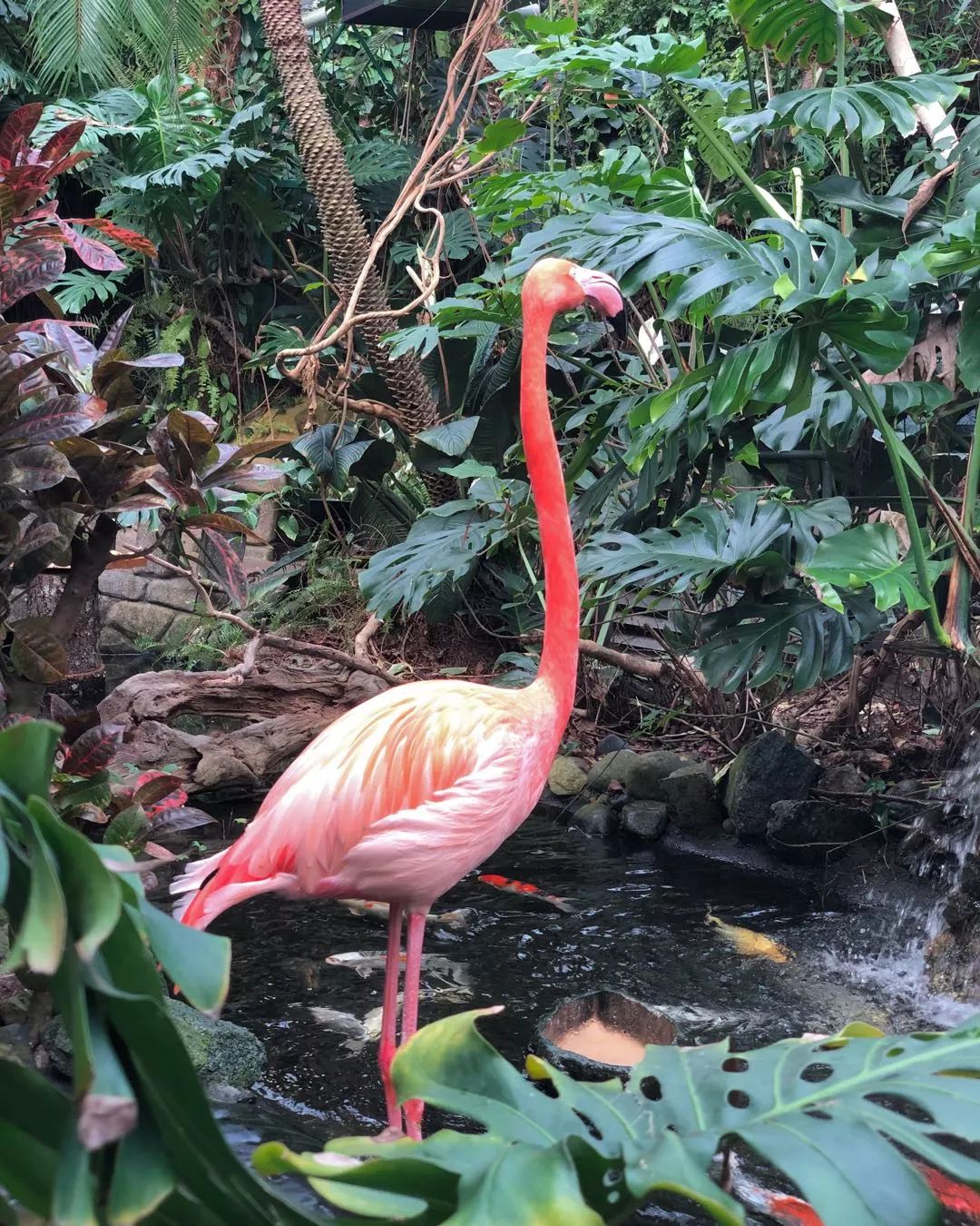 位于维多利亚蝴蝶园(Victoria Butterfly Gardens)中,被蝴蝶包围。但我看到有两只鸟类中最讨人喜爱的火烈鸟。两只都是公的,这大概解释了,为什么我们看不到鸟群。