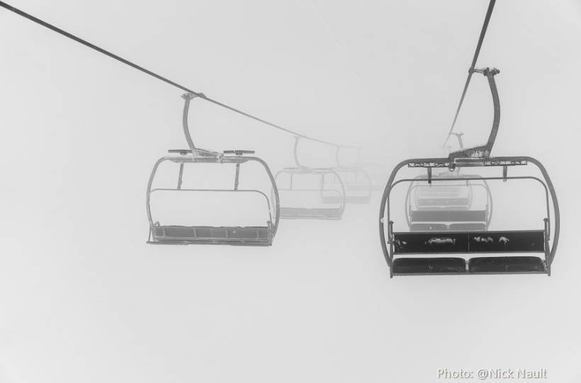 乘缆车之于滑雪就如旧时新嫁娘之于坐花轿,兴奋之余的忐忑,离地(娘家)之前的不安,既期盼又未知的前途,沿路之有心或无意的颠簸,落轿之前的若干考验(例如跨火盆),抵达峰顶(婆家)后的景致,以及要在一个不熟悉的环境中摸索与前行……嗯,其实乘缆车没那么“悲催”了,尤其是当这事你干得多了,竟然还能绽放出璀璨的风情来。