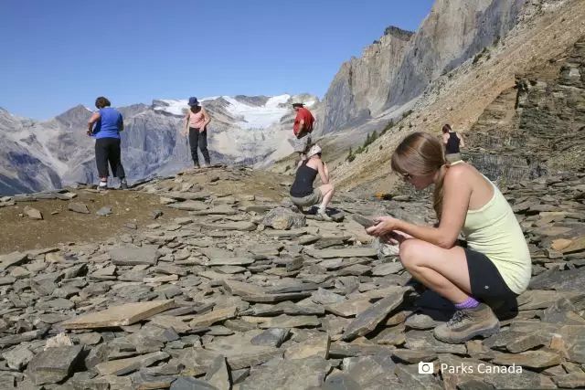 一般化石只会留存下古生物的骨骼、牙齿、壳等硬组织,而伯吉斯页岩是世上少有的保留有古生物软组织痕迹的化石群。参加专业的导览之旅,可以近距离观察这里的化石,细细端详,可见古生物的大脑、心脏、神经网络等软组织虽已被矿物质取代,却依然清晰可辨,仿佛大自然制作的一枚书签,精微至极。