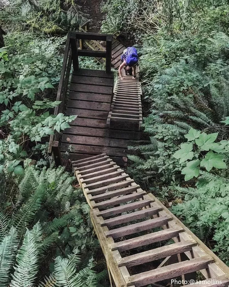 格劳斯山(Grouse Mountain)距离温哥华市中心只有15分钟车程,这里有一条温哥华人最爱的健行步道——格劳斯山格林德步道。这条长2.9千米、高853米的步道,平均坡度约为30度,几乎没有平地,这让它十分具有挑战性。据步道官网统计,走完步道全程平均需要1个半小时。对于健行新手,官方建议2小时内完成就好,记住千万不要逞强快走哦~ 如果累了就在步道沿路的长凳上休息,到达山顶后,你不仅可以俯瞰到温哥华的城市景观,还可以在格劳斯山度假村(Grouse Mountain Resort)大吃一顿美食补充能量。你可以选择格劳斯山空中缆车(Grouse Mountain Skyride)下山,俯瞰壮美的海岸山脉景色~
