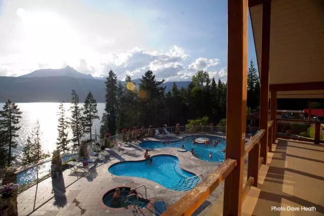 而在卡斯普(Nakusp)附近,你会发现哈尔西恩温泉(Halcyon Hot Springs )就位于美丽的箭湖(Arrow Lakes)湖畔,温泉村四周围绕着壮丽的莫纳希山脉(Monashee Mountains)。