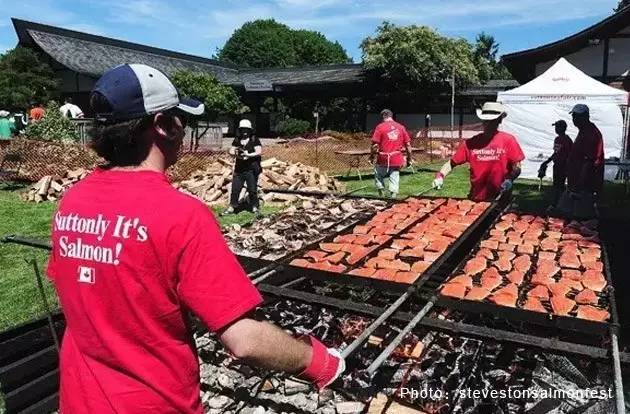 如果你身处温哥华,可是又不想在温哥华参加庆祝活动,给你推荐一个好去处——里士满,开车20分钟即到。这里的史蒂夫斯顿三文鱼节(Steveston Salmon Festival)是加拿大每年最大的非营利性节庆日之一。从早上6点半开始美食活动不间断,与加拿大日相结合绝对热闹非凡,花车,乐队,日本文化展,艺术表演等等应有尽有。当然这一天也绝对少不了节日的主角——三文鱼烧烤。有超过1200磅的野生三文鱼,绝对满足你的胃口!