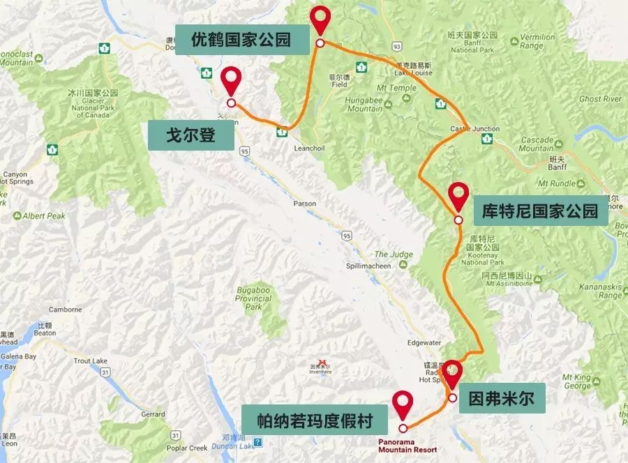 ▴库特尼落基山脉部分地区地图