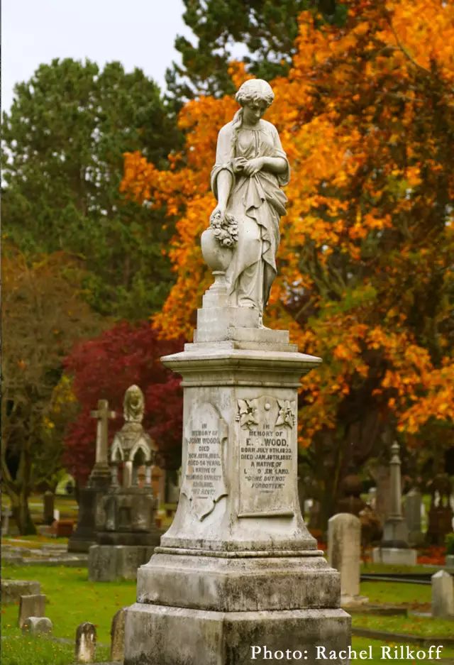 这里处处可见为本地名人而建造的优美大理石、沙岩和花岗岩纪念碑。许多维多利亚的重要人物也安葬在这里,包括艺术家Emily Carr,上面提到的那个臭名昭著的法官Matthew Begbie,和引发巴克维尔“淘金热”的Billy Barker。