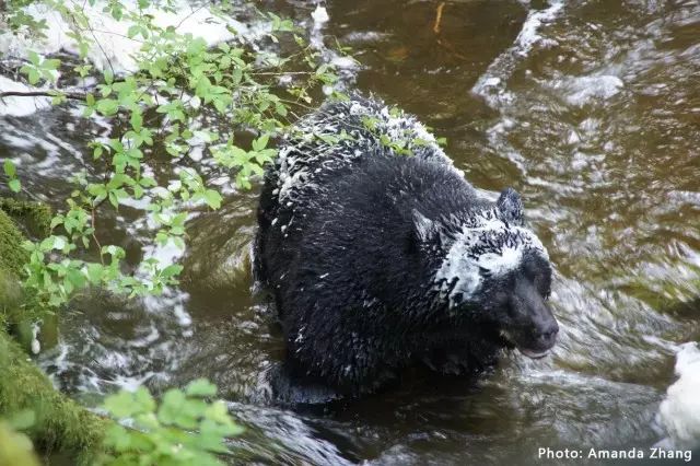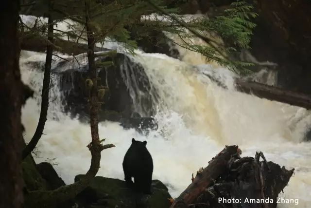 在大熊雨林原始森林中的灵熊观测点,也是三文鱼最活跃的地方,我们就在此静静守候灵熊的出现……