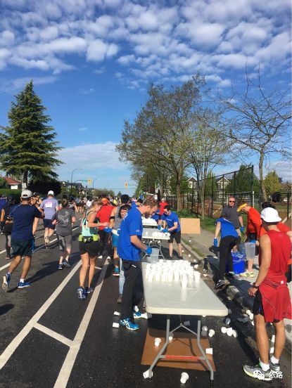 海外赛事的志愿者大多都是社会义工,所以年龄段分布很广,上到70多岁白发碧眼的老奶奶,下到5岁拿不稳杯子的小娃娃,都会热情的帮你递上水杯,临走前还不忘为你加油。