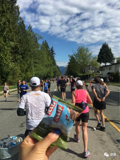 Clif的能量棒简直美味极了,由于被太阳晒过而稍微松软,刚好不会由于太硬而使选手没了食欲。蓝色或红色包装的Clif能量胶是那种没有死甜而过分粘稠的液体胶,即使跑得慢一样有的吃,不像国内很多500以后的选手跑到一半就出现断粮的被遗弃感……