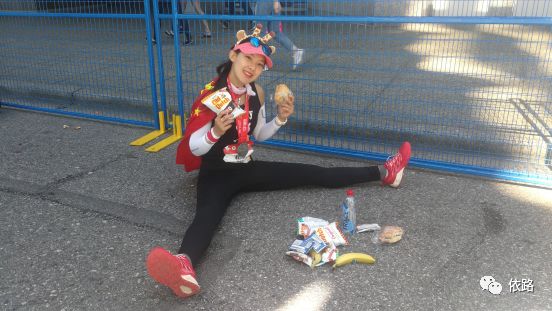 完赛后的我把这些美味一顿粮吞虎咽,坐在路边当作午餐一轮又一轮的吃起来。每个离开的选手都是抱着一大捧食物,挂着完赛奖牌幸福的离开赛后区域。