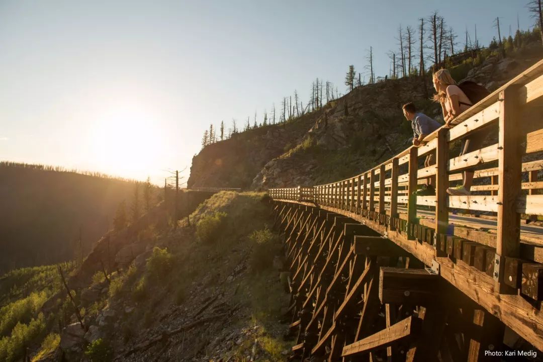凯托谷铁路步道(The Kettle Valley Rail Trail)蜿蜒延绵650公里,通过了高架桥和隧道,途经震撼壮丽的山景和湖光山色,穿越了几乎不可能穿越的地形,被评为“世界上最美丽的步道之一”。这条步道上,有你永生难忘的风景。