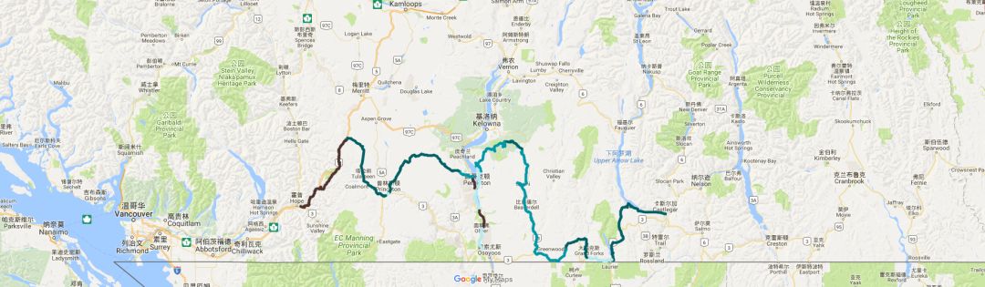 凯托谷&哥伦比亚西部铁路(The Kettle Valley Railway and the Columbia & Western Railway),于1915年正式建成,最初的建造是为了方便将银矿石从南库特尼山脉运输到温哥华。