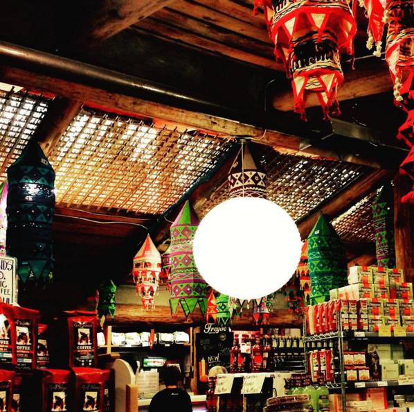 如今,这里已经发展成了小型集市,来自世界各地的杂货在这里都能买到:东印度的绸缎,中国的古老家具,墨西哥的杯子以及各式各样的首饰、木制玩具等。而且,各种口味的冰淇淋,刚出炉的面包、山羊奶酪,以及枫糖汁鲑鱼肉干都非常好吃,让人停不下来。如果驱车经过四号公路,可别忘了来这里围观一下这个奇妙的屋顶上跑山羊的集市咯!