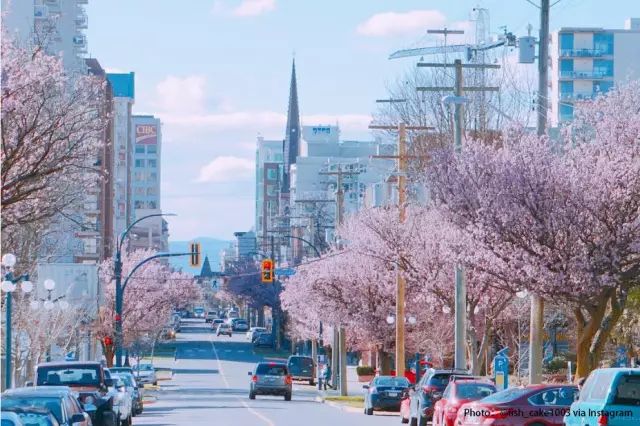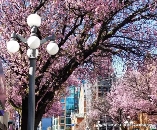 位于维多利亚市中心的景观大道当然是春天赏花必去的地方。这条街道总是第一个变成粉红色的樱花之海,单纯地走在这里人行道上就有满满的幸福感。