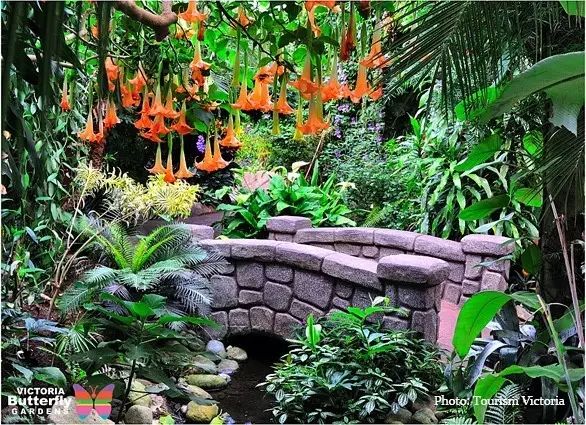 从布特拉花园向北开车5分钟,就能到达维多利亚蝴蝶园。花园位于维多利亚州北部的布伦特伍德湾(Brentwood Bay)。除了植物花朵的争奇斗艳,更可目睹6000多只珍异蝴蝶,在数百种热带植物从中翩翩起舞。