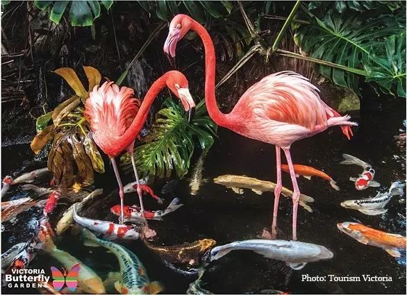 瑰丽的火烈鸟,珍贵的热带鸟群,变色龙,箭毒蛙,还有巨大的锦鲤在池塘和小溪中游弋。漫步在郁郁葱葱的花园,缤纷的热带花卉、奇异的食肉植物和来自世界各地的奇珍异果,会为你打造一派难寻的加拿大热带风情。