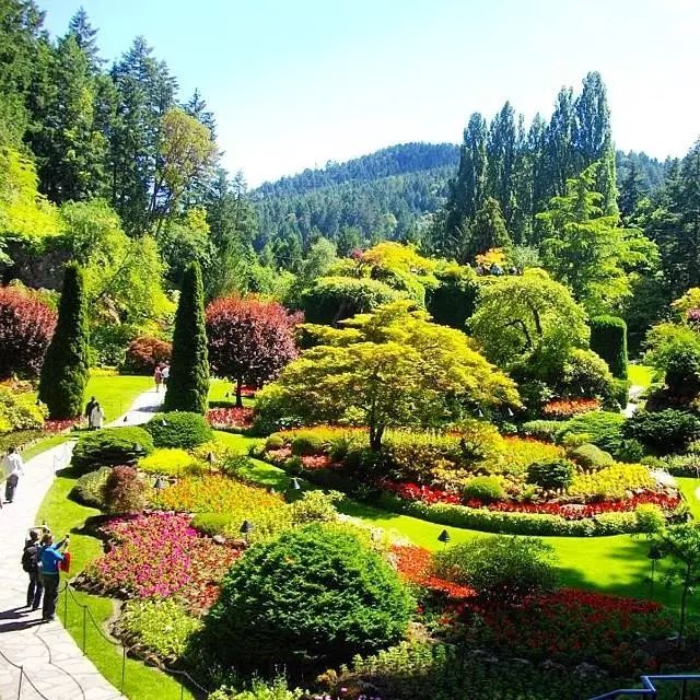 布查特花园 ( The Butchart Gardens ) 是世界上最著名的私家花园之一。有超过700种花生长在四季不同主题的花园里,包括日式庭院、下沉花园、玫瑰花园、意大利花园以及地中海式花园。园内有21米高的玫瑰喷泉、玫瑰旋转木马,夏季还有精彩的烟花表演,别忘了在这里喝一杯正宗的英式下午茶!