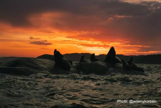 ▲傍晚时分,Jeremy浮出水面时拍到的震撼一幕:斯特勒海狮迎着夕阳咆哮,仿佛是海洋中的棕熊