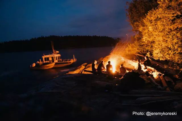 ▲经历了一天的自由浮潜,晚上Jeremy和他的朋友们在尼莫湾度假村的沙滩上围着篝火聊天,分享自己的狂野故事
