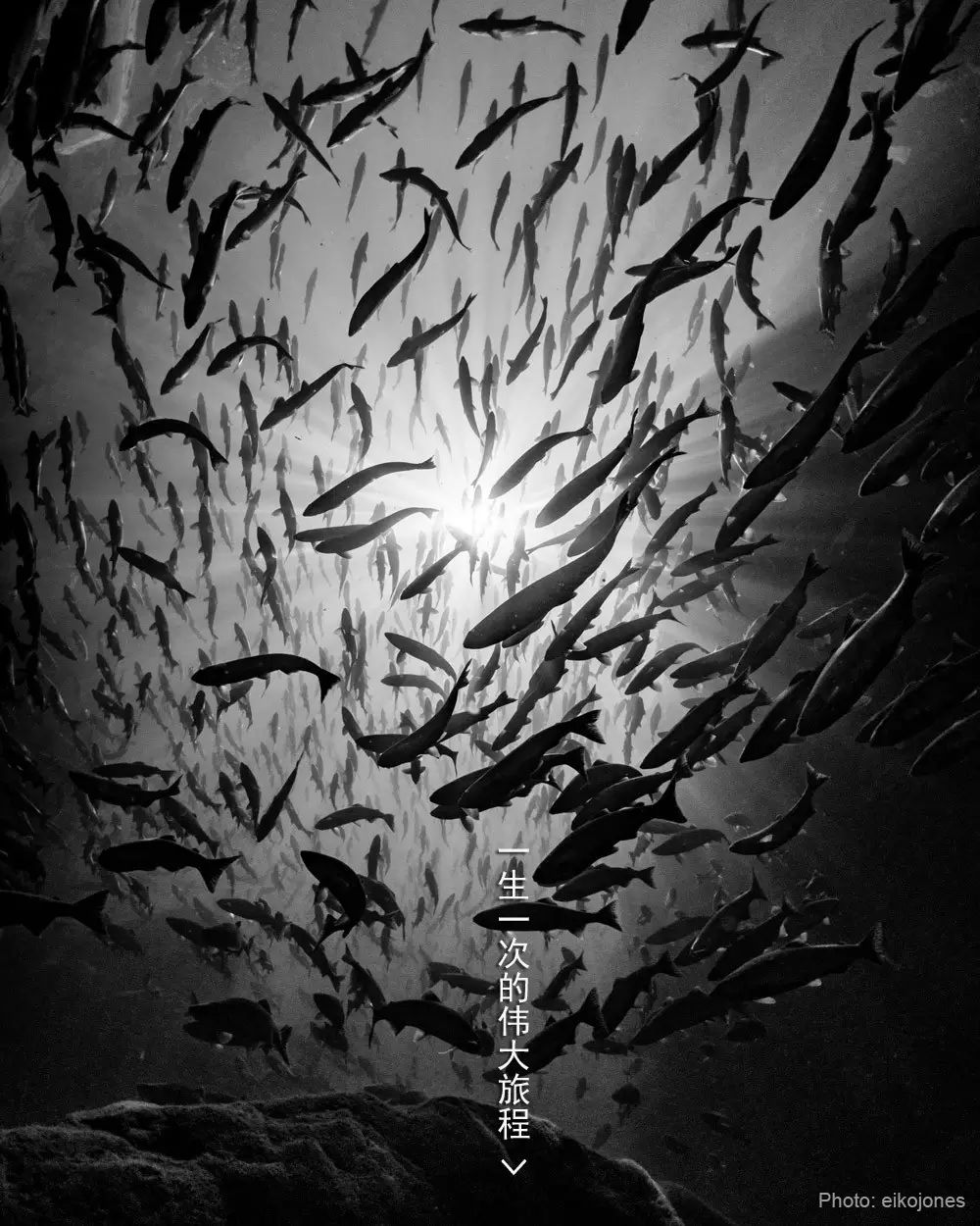 鲑鱼逆流而上,沿途无数湍急溪流等着它们。