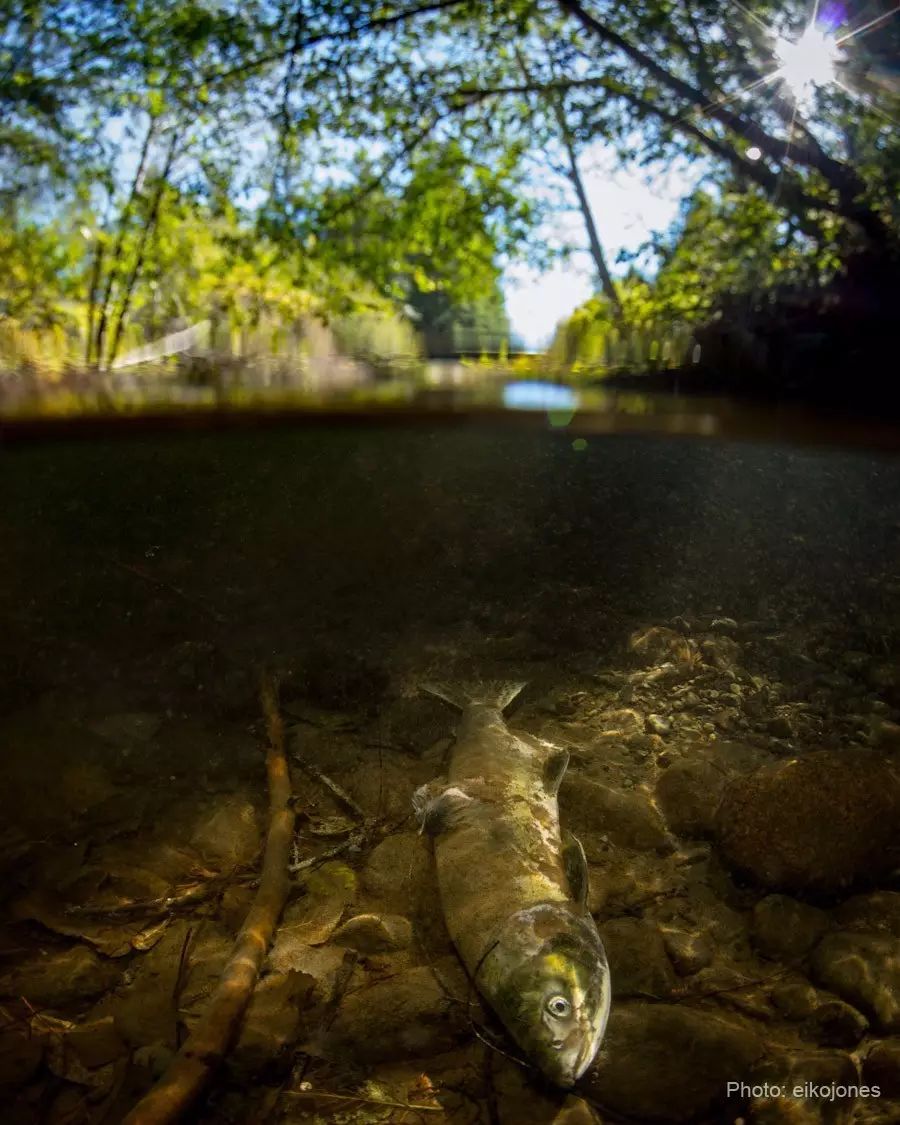 漫长的归乡旅程耗尽了鲑鱼的全部“洪荒之力”,它们付出了惨痛代价,平均每1000条洄游的鲑鱼,只有4条能顺利到达目的地产卵。
