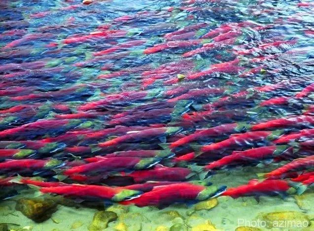 鲑鱼的神奇之处在于:即使返乡路程数千公里,入海的河道数千条,鲑鱼依然能准确地找到回家路,它们到底是怎么做到的?这个问题至今是个未解之谜,根据科学家推测,有两种说法:一是鲑鱼天生能通过地球磁力线找到回家的路;另一种说法是鲑鱼凭着惊人的嗅觉,能从海水中敏锐分辨出家乡河水的丝丝细流,从而找到归途。