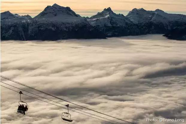 瑞佛史托克山地度假村(Revelstoke Mountain Resort)1,713米的北美滑雪场最大垂直高度让云层氤氲在脚下变成轻而易举的现实。