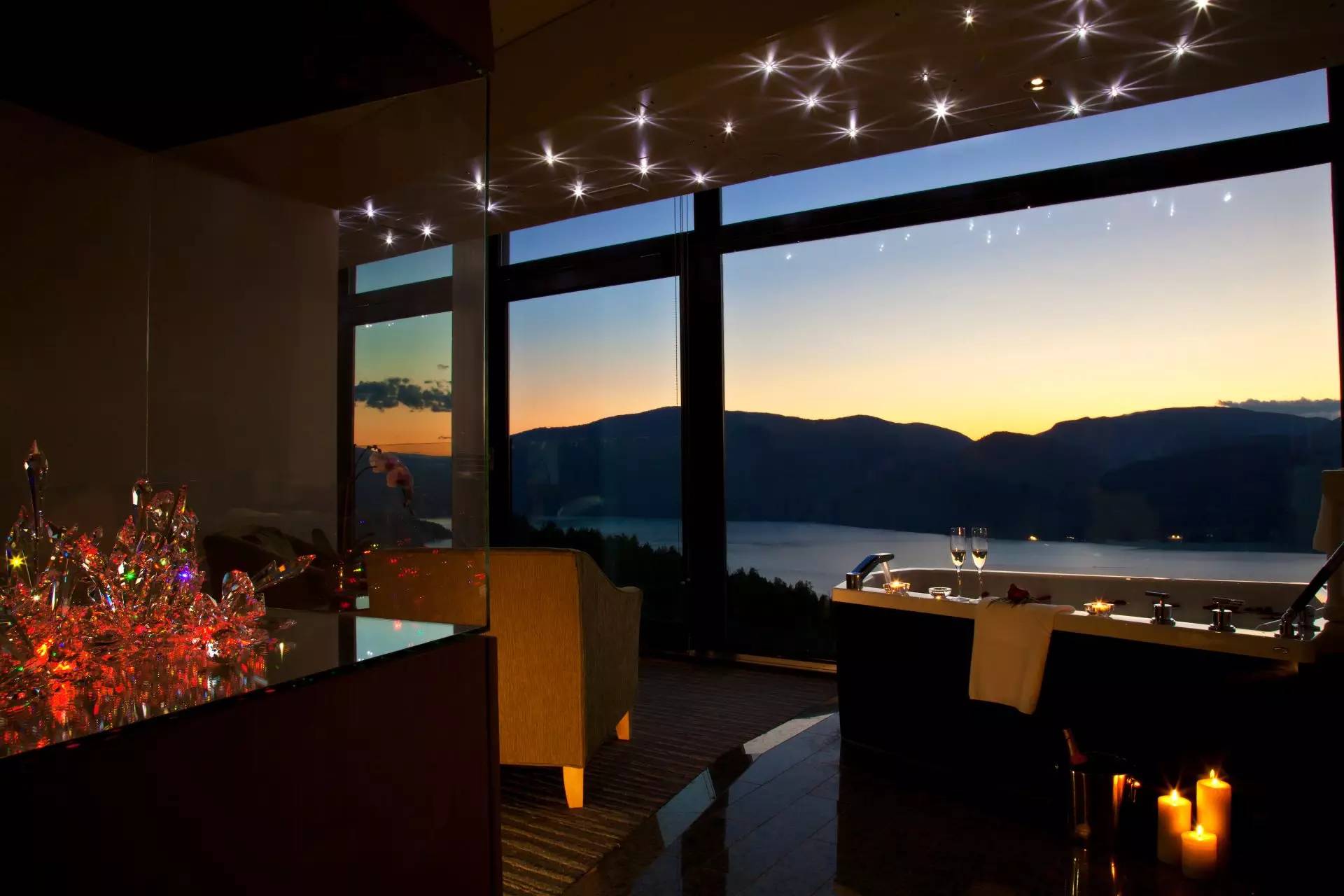 闪耀山庄每一个房间都采用落地玻璃窗设计,在客房内,你不仅可以欣赏到莫纳希山脉的壮美景观,还可俯瞰娇羞的欧垦娜根湖全景,360度无死角!甚至连浴室都有意采用全通透式设计,没有任何窗帘遮挡,面对碧波蓝天,你可以彻底裸露,享受阳光与温泉的滋养,不用有羞涩和顾忌,因为你唯一面对的就是大自然!