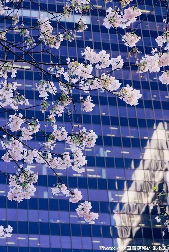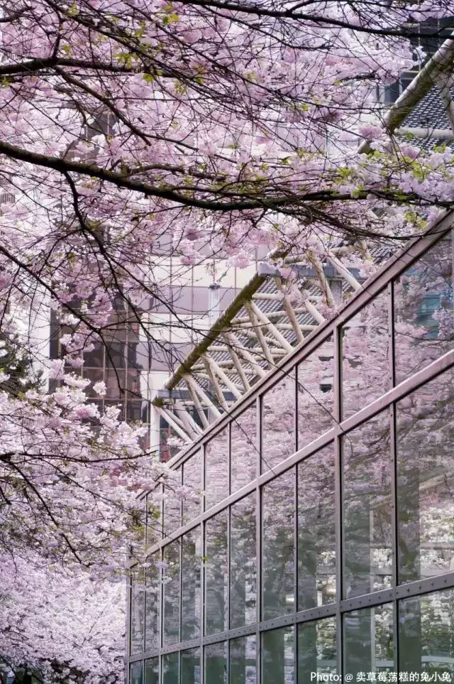 巴拉德车站的玻璃建筑和樱花相映成趣