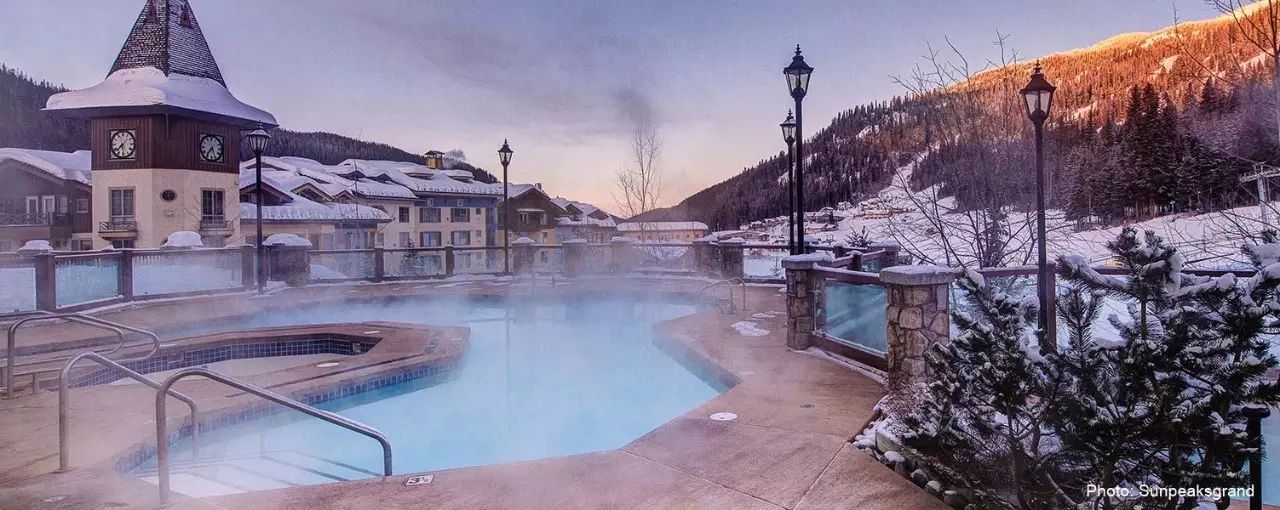 坐落于帕纳若玛山庄的Panorama Springs Lodge配备滑进/滑出通道,方便滑雪归来疲惫的你尽快进入温暖的温泉中洗去一天的疲惫。