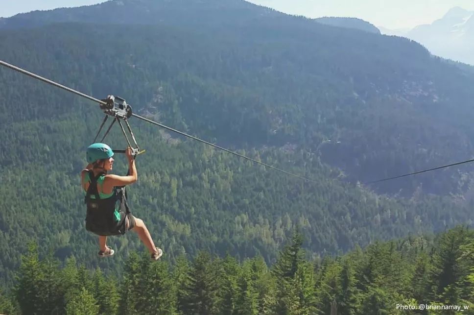 在惠斯勒山和黑梳山之间的菲茨西蒙斯(Fitzsimmons)山涧上,钢制飞索将带你体验飞翔的刺激。索道悬于森林上空610米处,你将以高达每小时80公里的速度沿着索道直冲出61米远,尽情享受那一刻的刺激和动感!