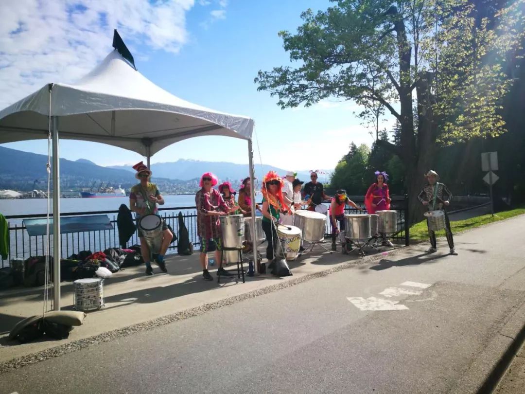温哥华马拉松还是一个绵延的音乐会,从起跑点开始沿途的多个音乐站,无疑是本次赛事的最强补给之一。密集的鼓点激发刚健的步伐,生动的乐曲直击心脏,给予跑者们最直接、明快、有效的刺激。